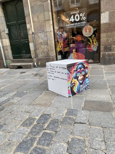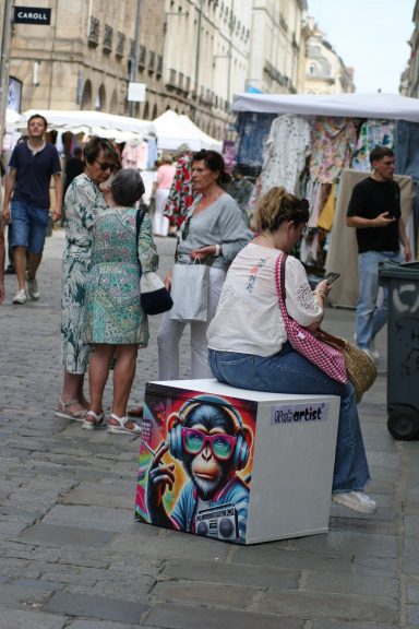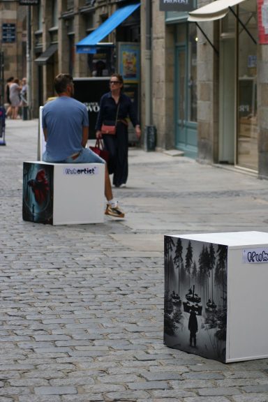 Quand le mobilier urbain éphémère, devient une galerie d'art à ciel ouvert. Découvrez ce concept novateur et unique en Europe, conçu et fabriqué dans nos ateliers. Pourquoi ne pas vous démarquer avec cette animation qui va beaucoup faire parler ? Au total, ce sont 18 cubes artistiques qui seront installés sur la zone souhaitée, qui sont à la fois des sièges urbains pour les passants, mais aussi l'objet d'échanges, de curiosité et d'autres interactions.